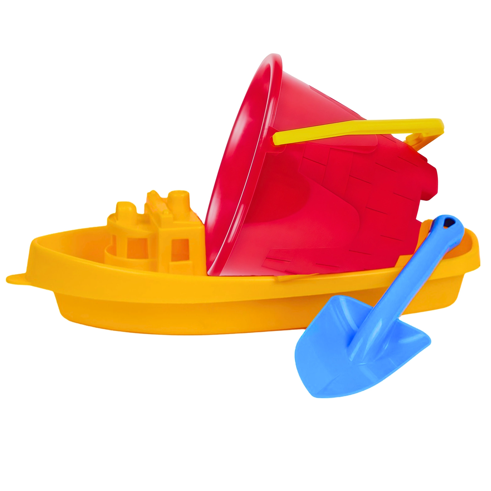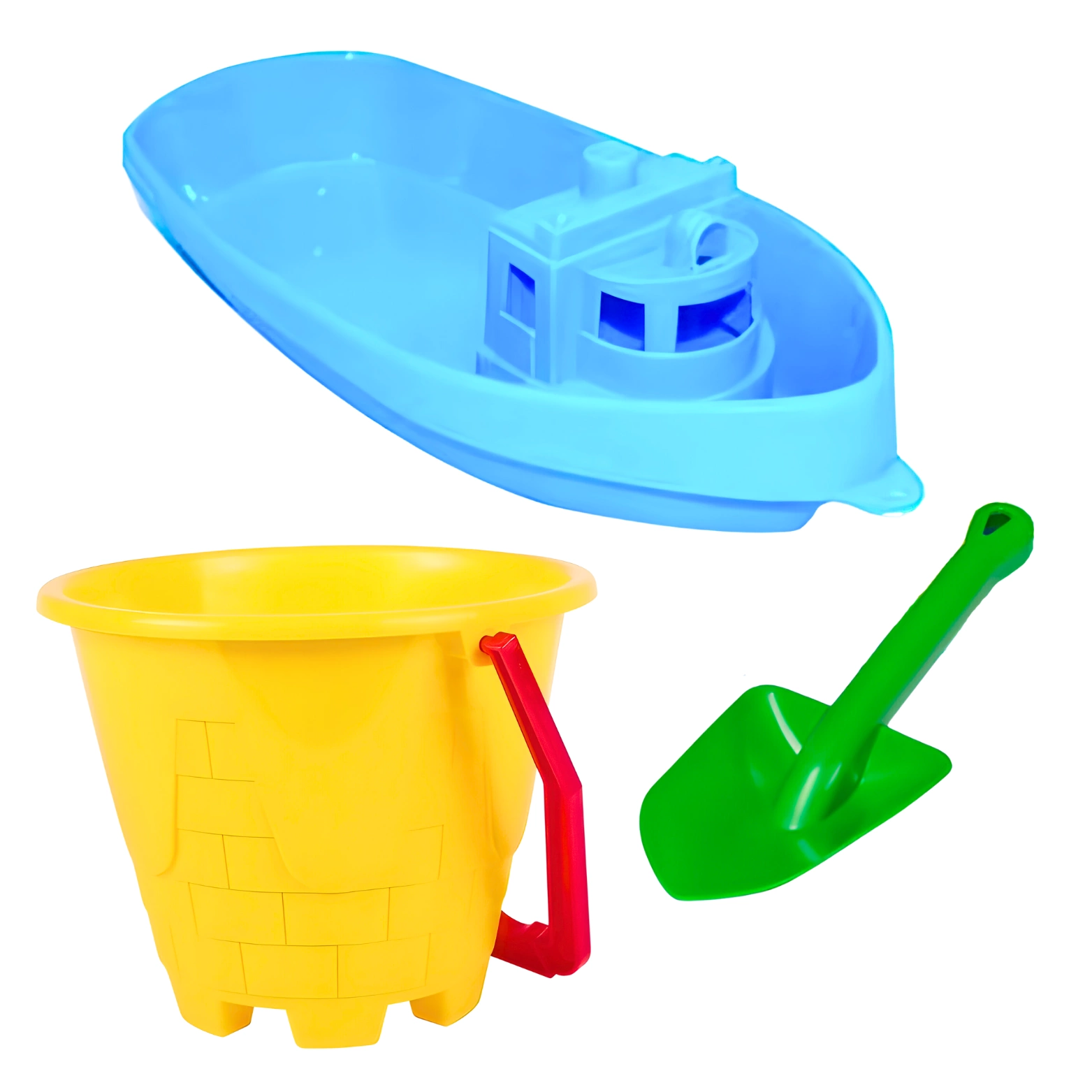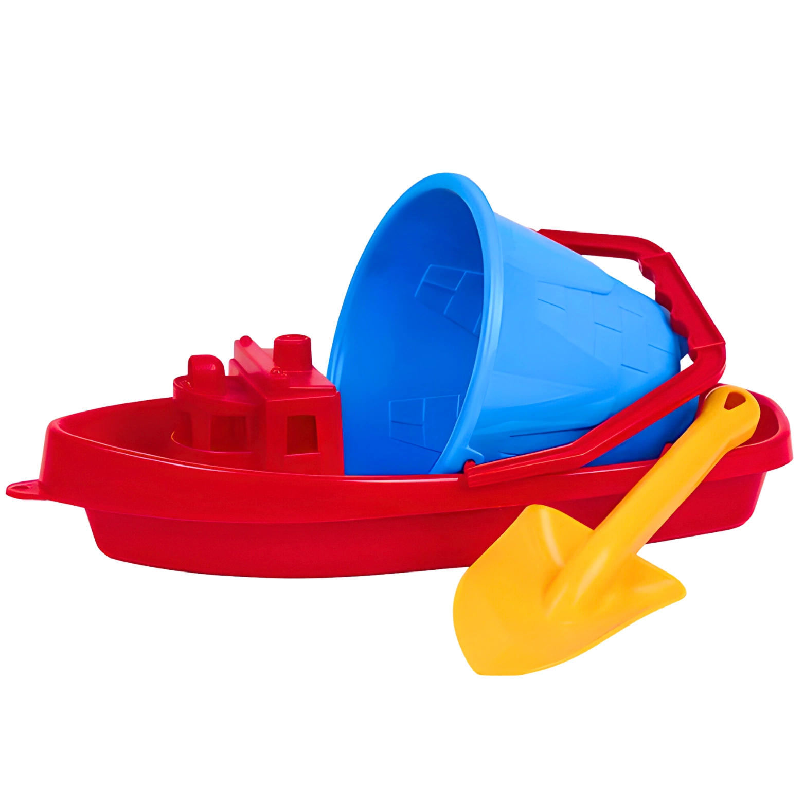 Wielokolorowy komplet do zabawy w piaskownicy, ogrodzie czy na plaży.