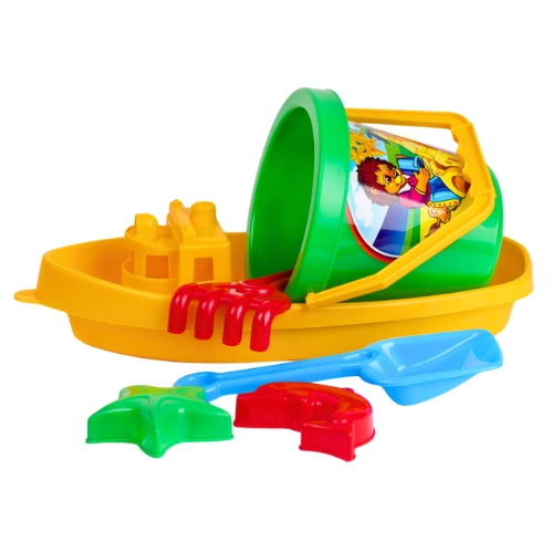 Wielokolorowy komplet do zabawy w piaskownicy, ogrodzie czy na plaży.