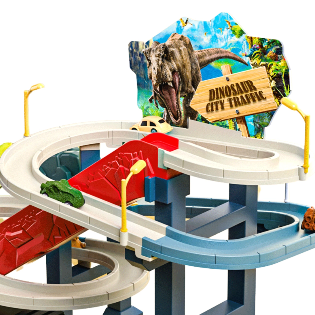 Wielofunkcyjny parking i tor wyścigowy z dinozaurami dla dzieci to zaproszenie do fascynującego świata motoryzacyjnej zabawy! Ten kolorowy zestaw pełen jest niezapomnianych chwil i ekscytujących przygód, które rozbudzą wyobraźnię i rozwijają zdolności motoryczne maluchów.