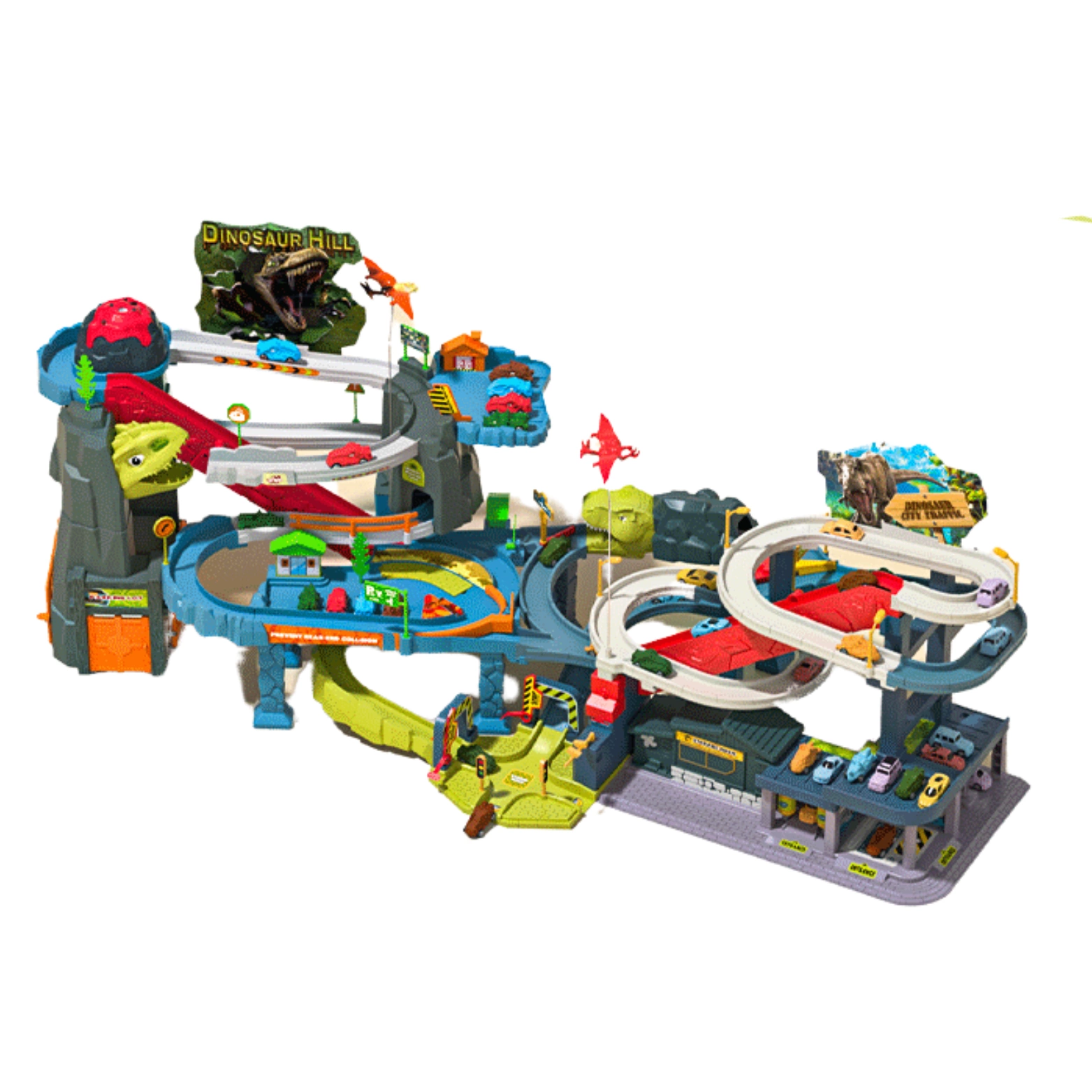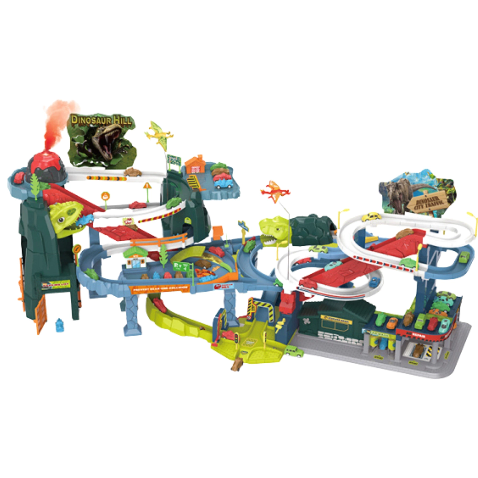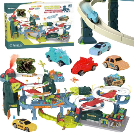 Zestaw Duży Tor Wyścigowy Parking Dinozaury Minisamochody Światło Dźwięk