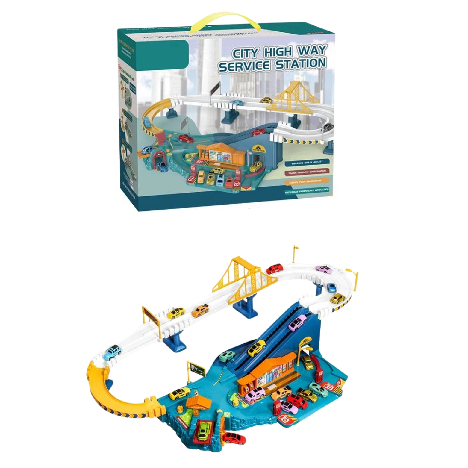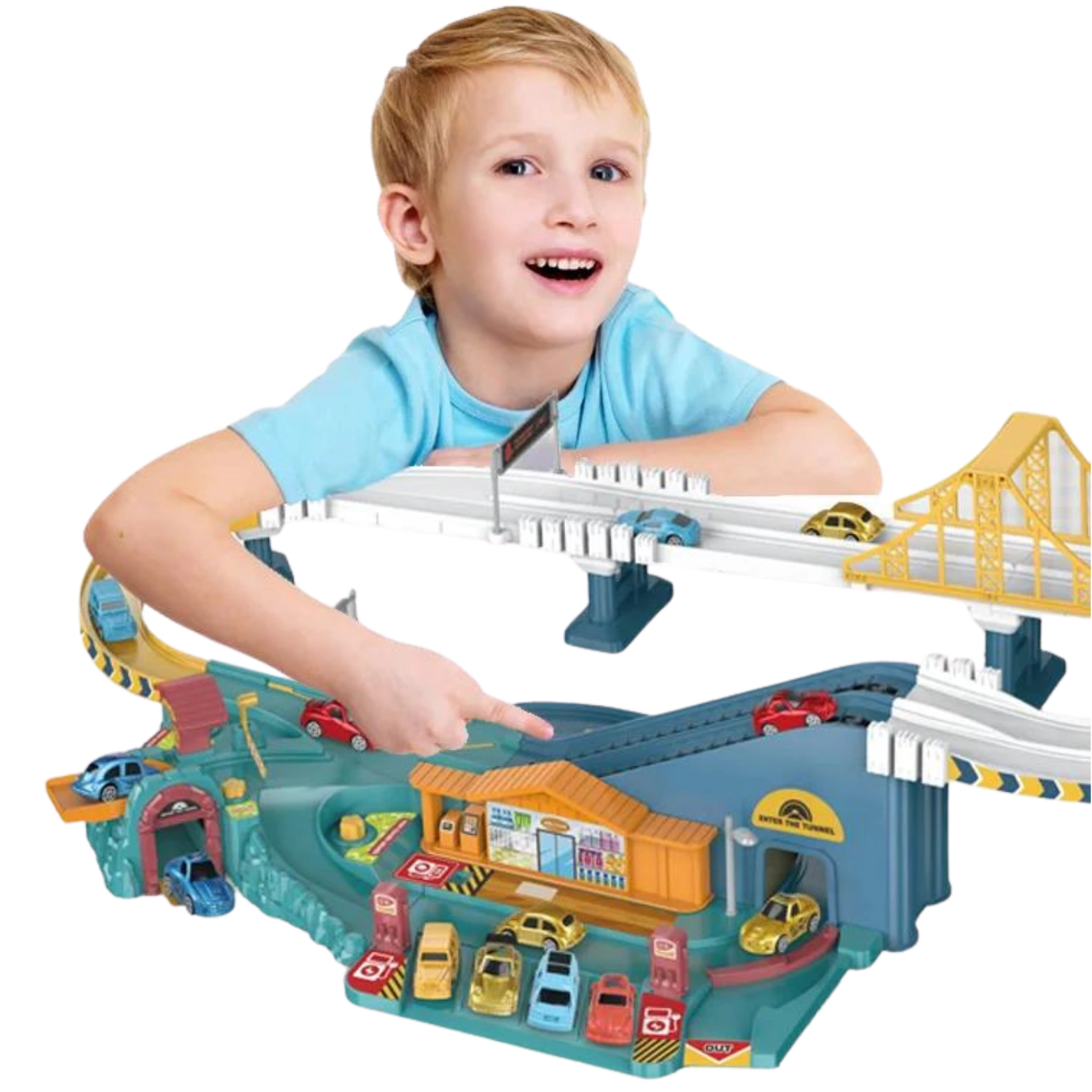 Fascynujący tor wyścigowy i parking to interaktywna zabawka, która dostarczy rozrywki oraz rozwinie umiejętności i pobudzi wyobraźnię.