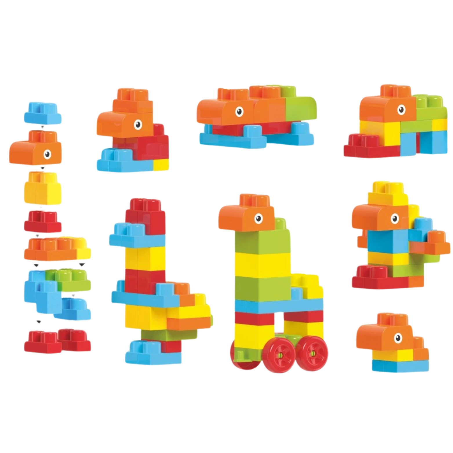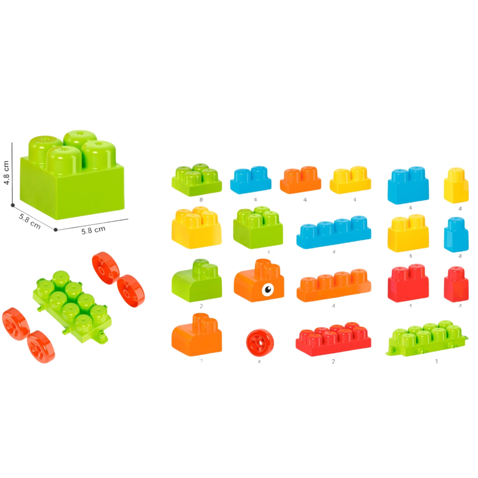 Klocki wykonane zostały z wysokiej jakości materiałów, zapewniając całkowicie bezpieczną i długotrwałą zabawę. Jaskrawe kolory nadadzą delikatny i przyjemny wygląd, co przyciągnie uwagę każdego malucha, zatracając go w kreatywnej i niesamowitej zabawie.