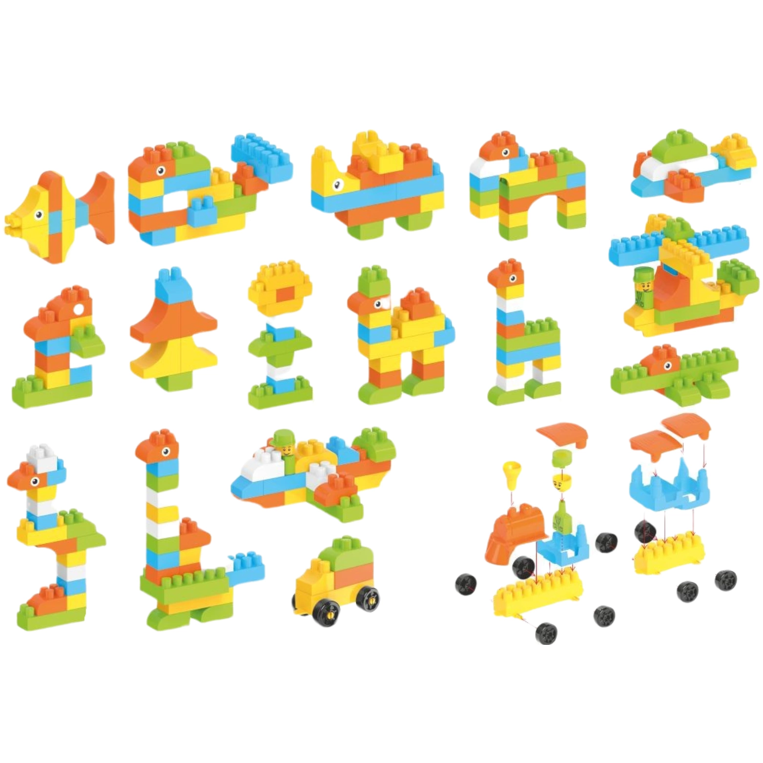 Klocki wykonane zostały z wysokiej jakości materiałów, zapewniając całkowicie bezpieczną i długotrwałą zabawę. Jasne kolory nadadzą delikatny i przyjemny wygląd, co przyciągnie uwagę każdego malucha, zatracając go w kreatywnej i niesamowitej zabawie.