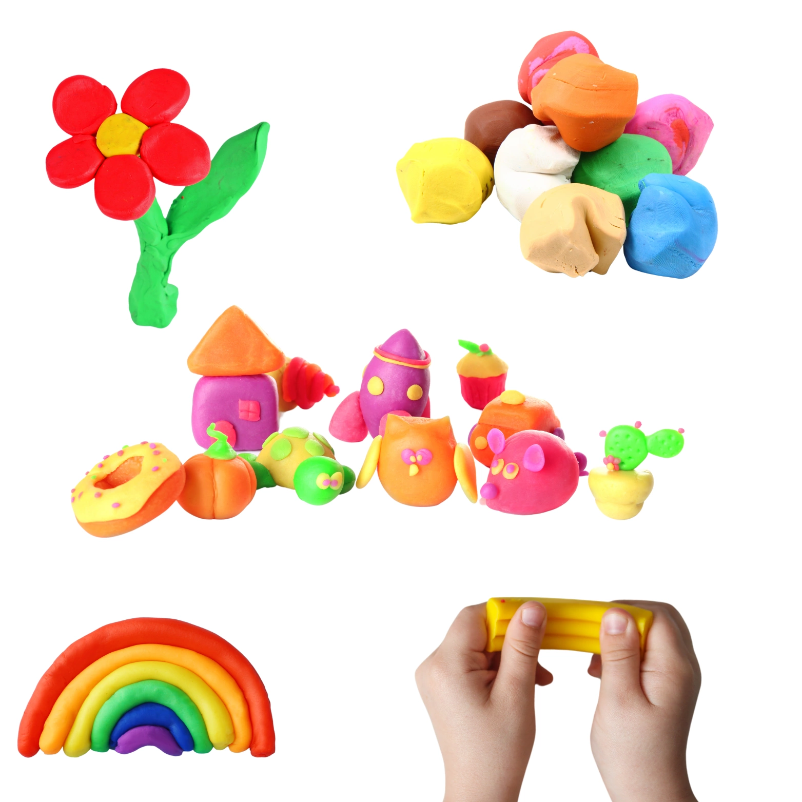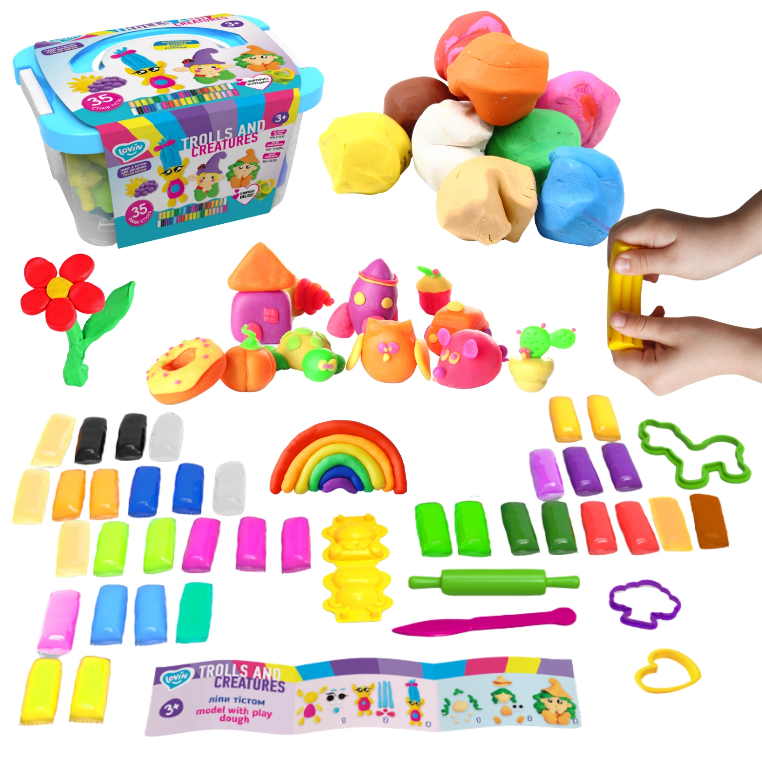 Kształty: Ciastolina utrzymuje kształt, w którym została uformowana, co pozwala na tworzenie trwałych dzieł sztuki. Dzieci mogą zbudować trójwymiarowe obiekty, dzięki dołączonym foremkom oraz narzędziom.