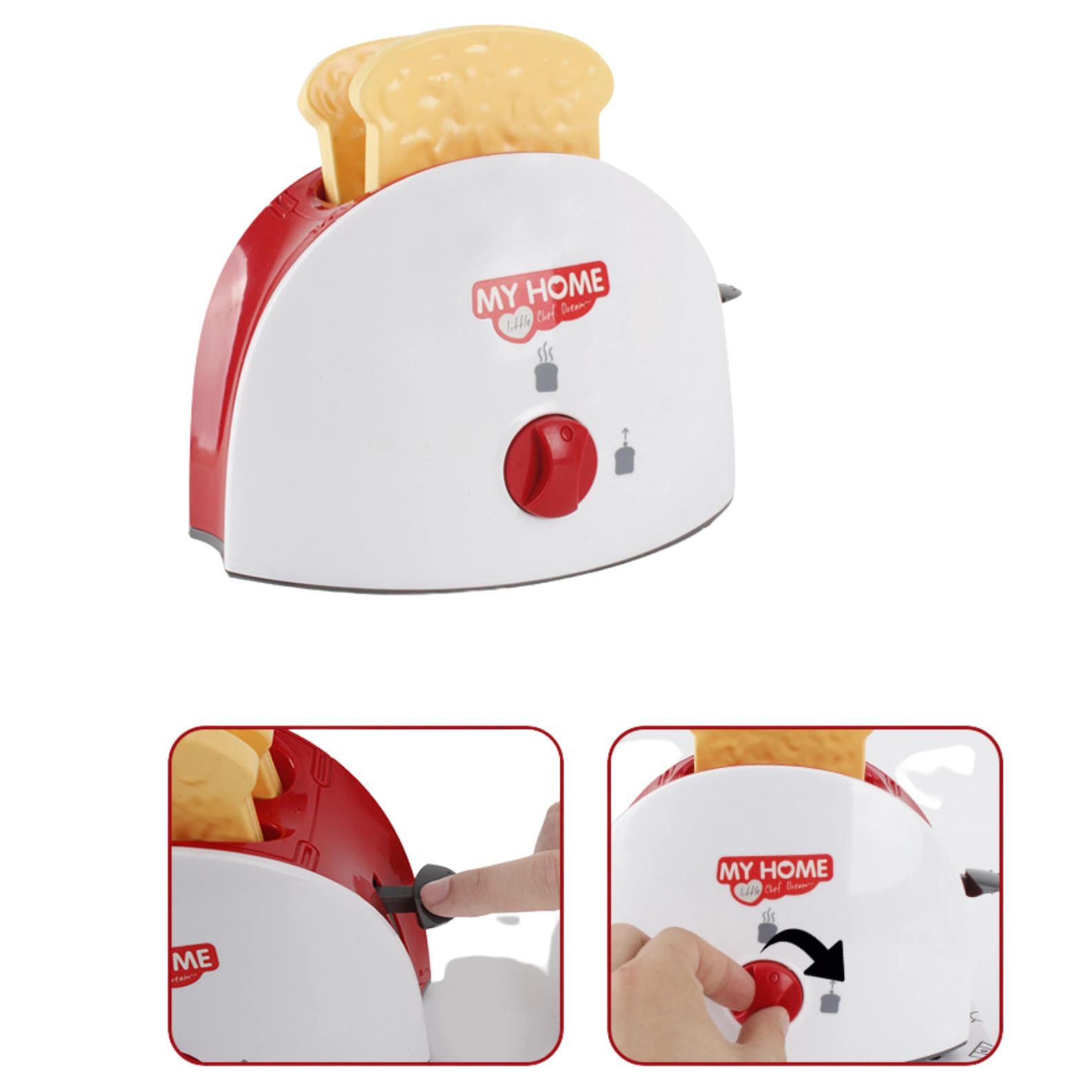 Toster idealnie się sprawdzi do przygotowania pysznych kanapek lub tostów, wkładając je do opiekacza i obserwując jak stają się złociste. Toster posiada dźwignie co symuluje proces przygotowywania jedzenia.