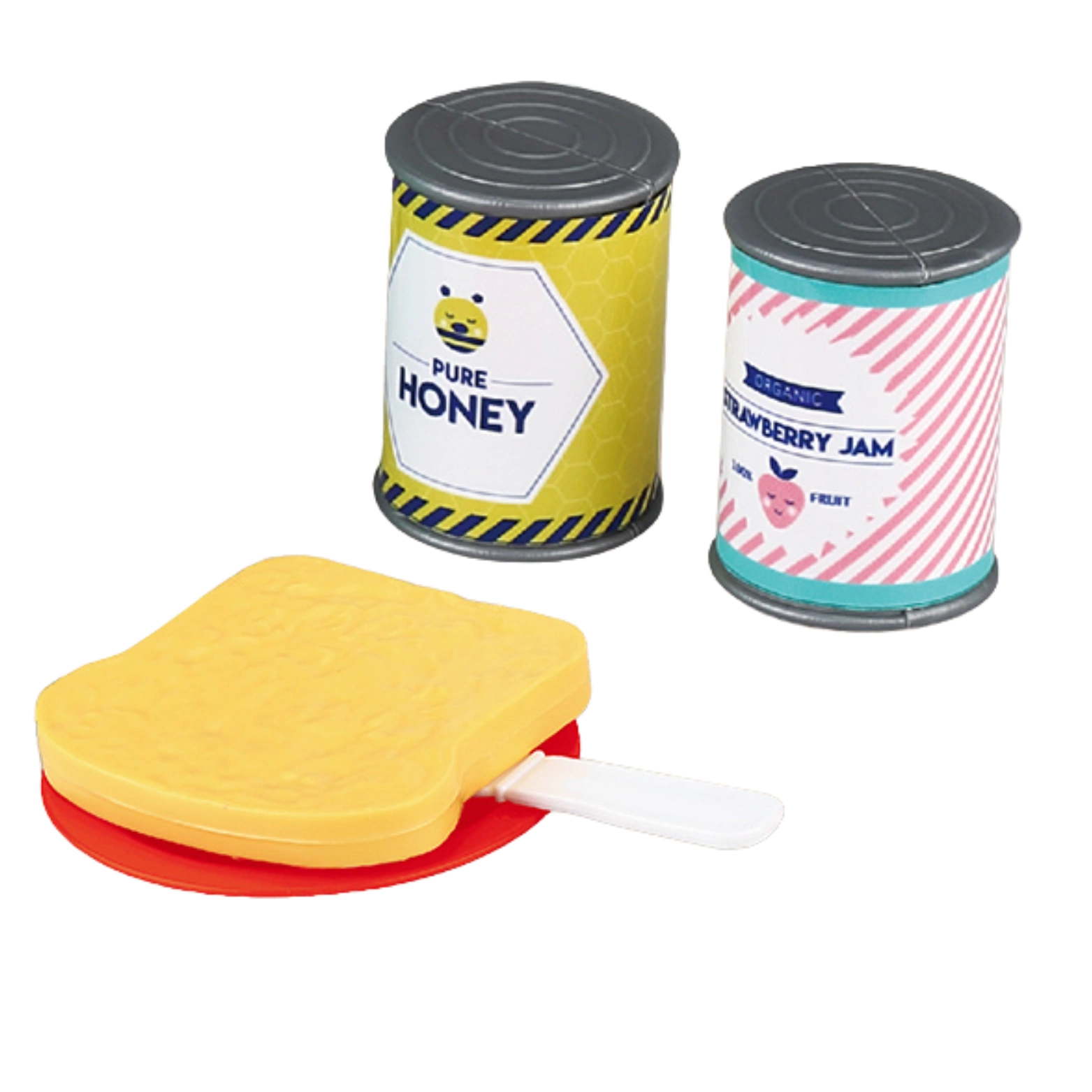 Dodatkowo zestaw posiada produkty spożywcze takie jak dżem, miód, banan, ciasteczka, a nawet jajko sadzone!
