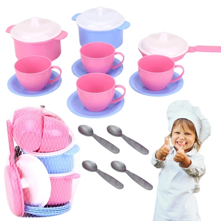 Do zestawu dołączone są dwa garnki z pokrywkami, patelnia, filiżanki ze spodeczkami i łyżeczki. Wszystko jest w idealnym rozmiarze dla małych rączek. Dokładnie odwzorowane detale sprawiają, że kuchnia staje się miejscem, gdzie każdy maluch czuje się jak prawdziwy szef kuchni.