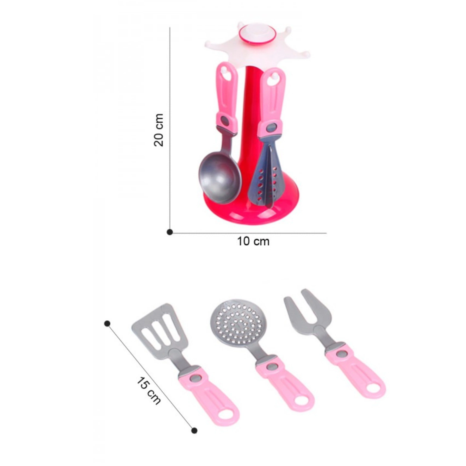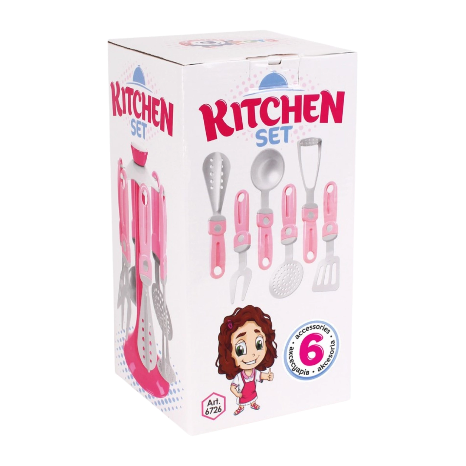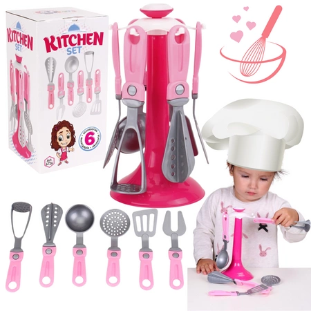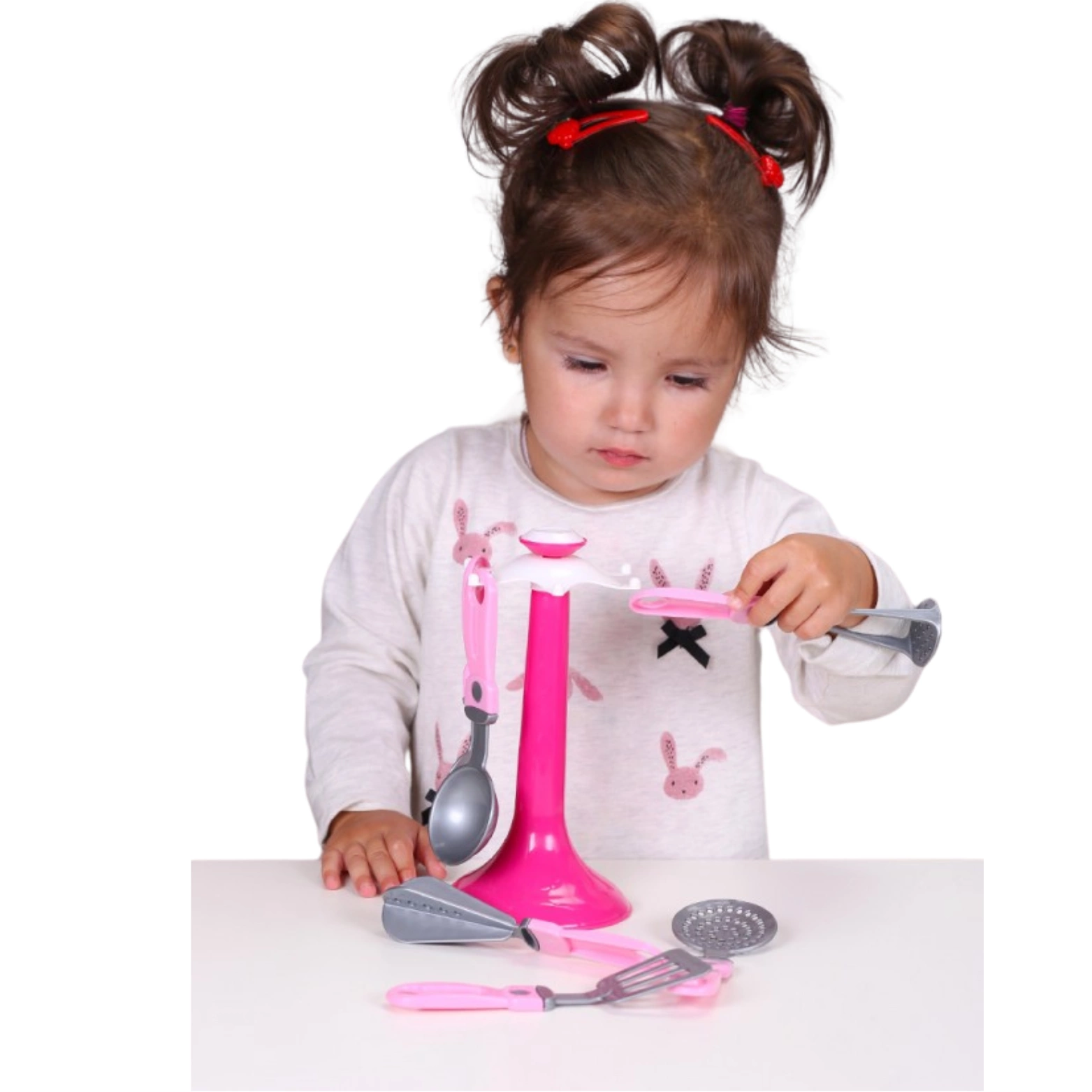 Zabawkowy zestaw kuchenny został starannie zaprojektowany, aby odwzorować prawdziwe narzędzia kuchenne. Dzieci mogą dzięki temu wcielać się rolę małych szefów kuchni, ucząc się poprzez zabawę. Przybory zaprojektowane zostały z wytrzymałego i bezpiecznego tworzywa, pozbawionego ostrych krawędzi.