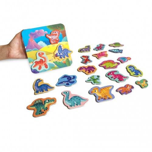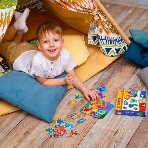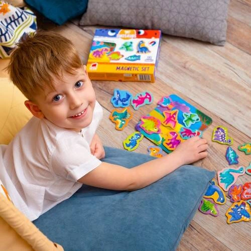 Zestaw magnetyczny z tabliczką "Dinozaury" to wyjątkowy zestaw edukacyjny, który doskonale integruje zabawę z nauką i rozwijaniem różnych umiejętności u dzieci. Ten zestaw zawiera specjalną tabliczkę z obrazkiem, na której dzieci mogą układać magnetyczne elementy z dinozaurami.