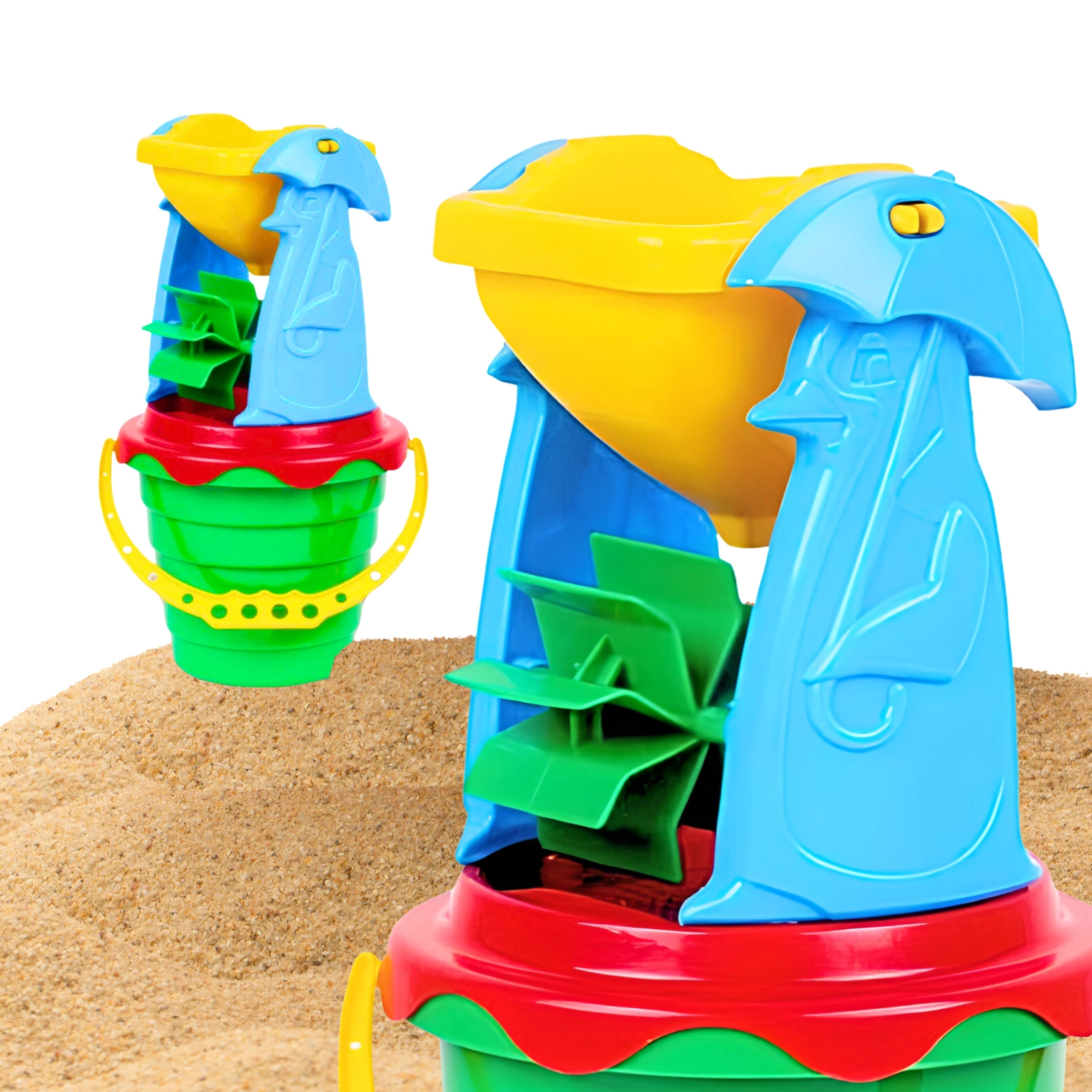 Kolorowy młyn to świetne urozmaicenie zabawy w piasku lub wodzie, dzięki prostemu mechanizmowi i intensywnym kolorom.