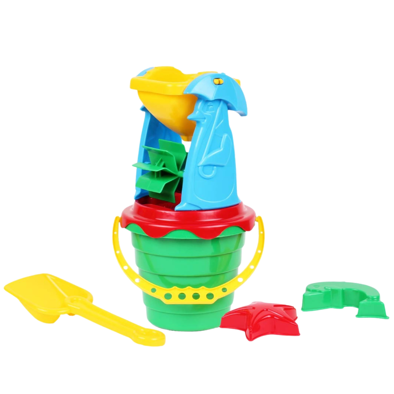 W tym zestawie poza samym młynem, znajdują się również: łopatka, wiaderko z wytłoczonym wzorem, foremki (2).