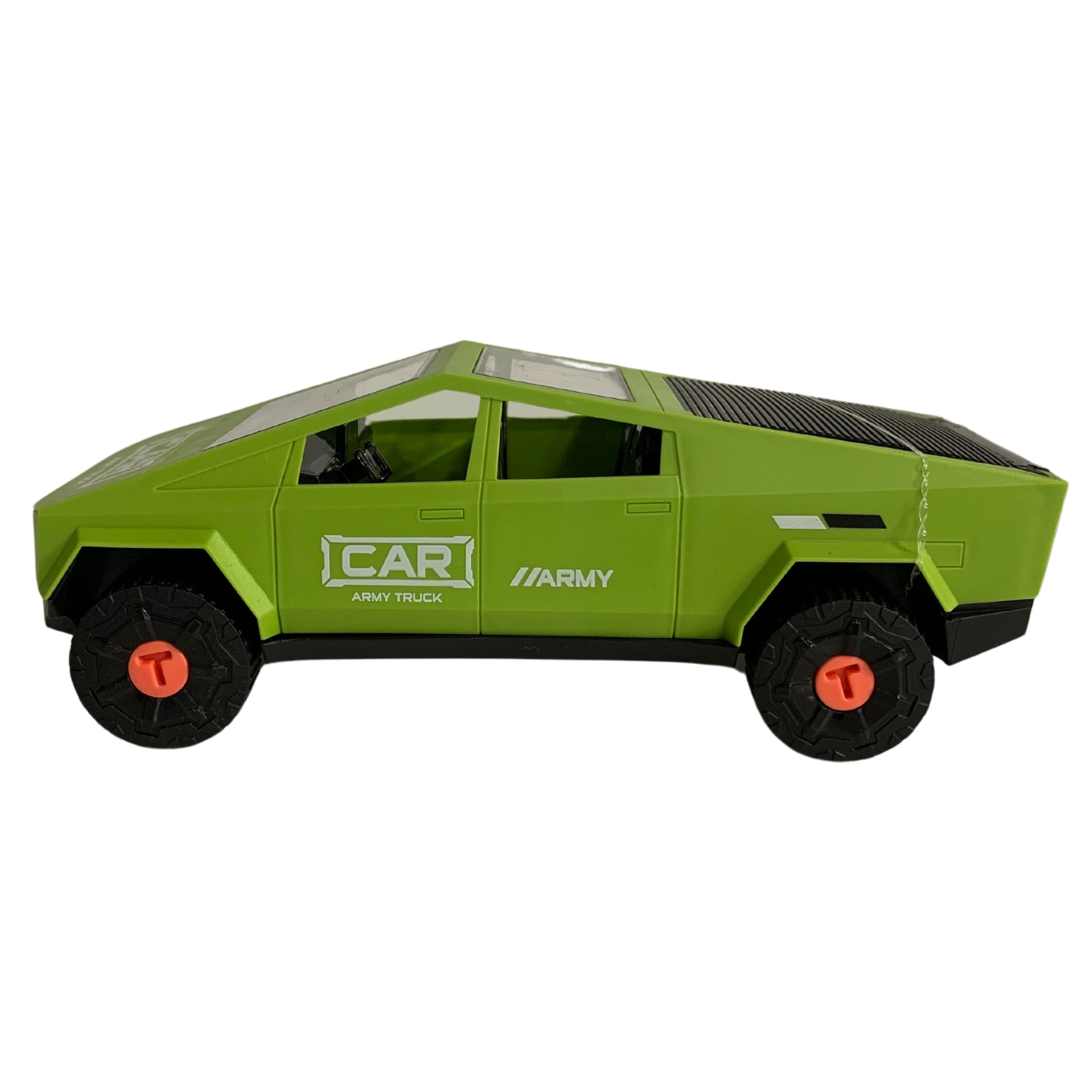 Samochód z przesuwaną przyczepą to główny element zestawu. Wyposażony w ruchome części, samochód oferuje pełen zakres zabawy. Koła pojazdu można samodzielnie wkręcać i wykręcać, co rozwija zdolności motoryczne dziecka. Przyczepa zawiera czołg gotowy do startu! Elementy czołgu również można montować samodzielnie.