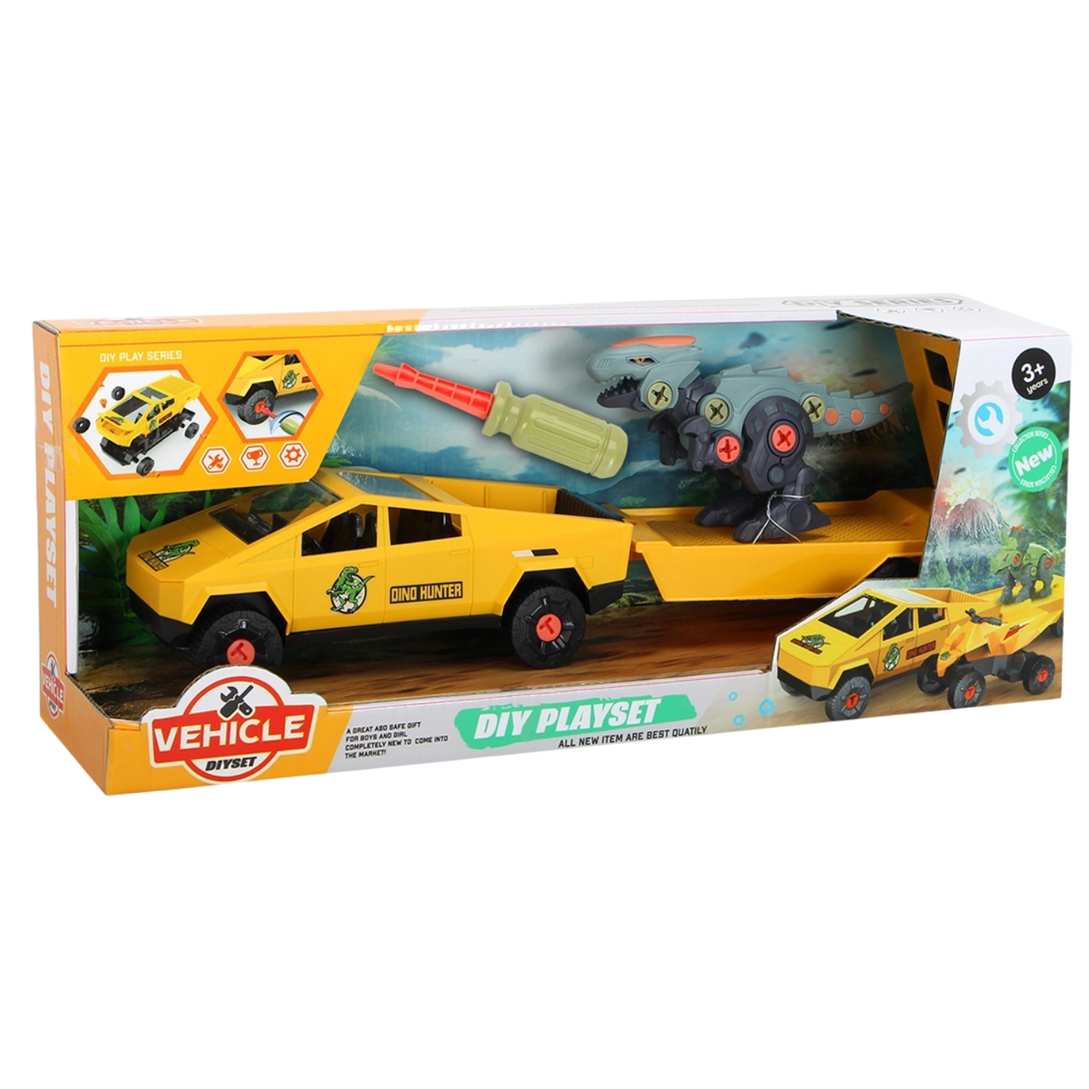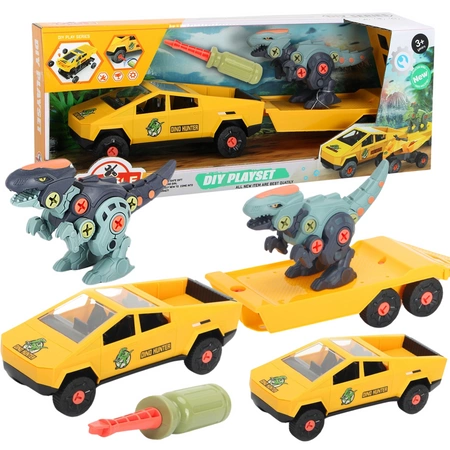Zestaw z samochodem do montażu i demontażu z przyczepą i dinozaurem to fascynujące doświadczenie konstrukcyjne dla dziecka. Jest to idealny wybór dla małego inżyniera.