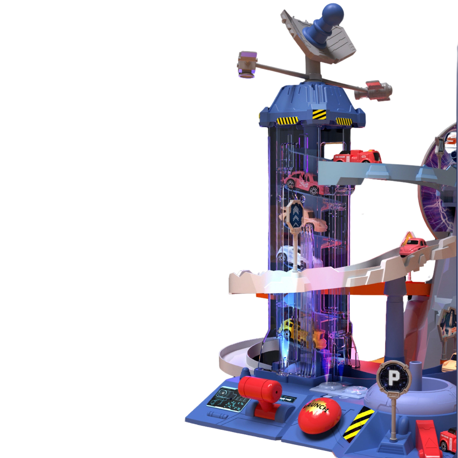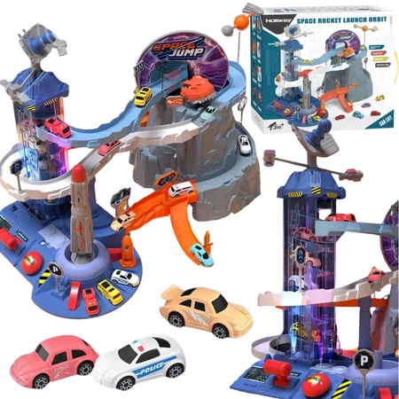 Zestaw Tor Wyścigowy Parking Stacja Kosmiczna Winda Autka Efekty Świetlne