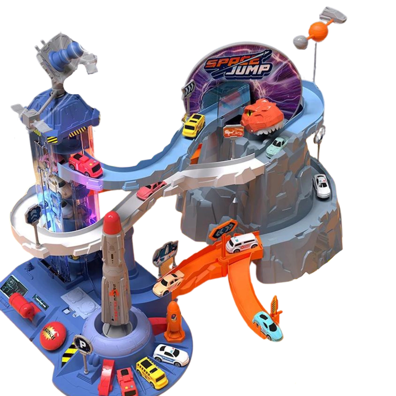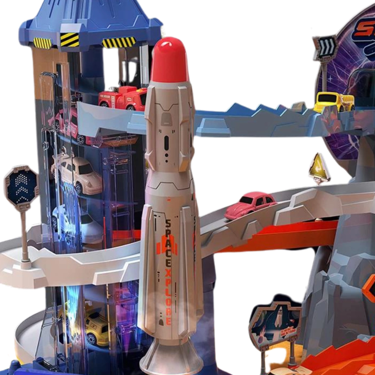Wielofunkcyjny parking i tor wyścigowy z motywem kosmosu dla dzieci to zaproszenie do fascynującego świata motoryzacyjnej zabawy! Ten kolorowy zestaw pełen jest niezapomnianych chwil i ekscytujących przygód, które rozbudzą wyobraźnię i rozwijają zdolności motoryczne maluchów.