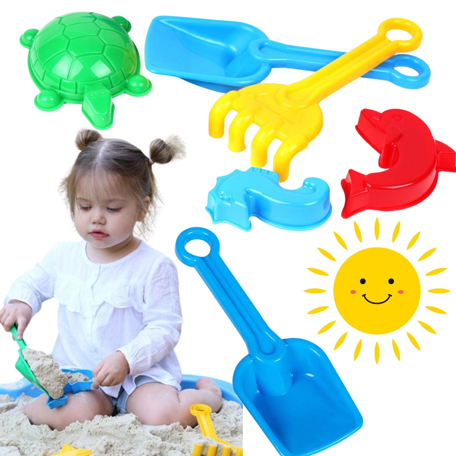 Dzięki foremkom do piasku o różnorodnych kształtach, dziecko może tworzyć niezwykłe konstrukcje i dzieła. Rozwija to kreatywność i wyobraźnię u maluchów, a także, dzięki jasnym barwom, dziecko uczy się rozpoznawać kolory.