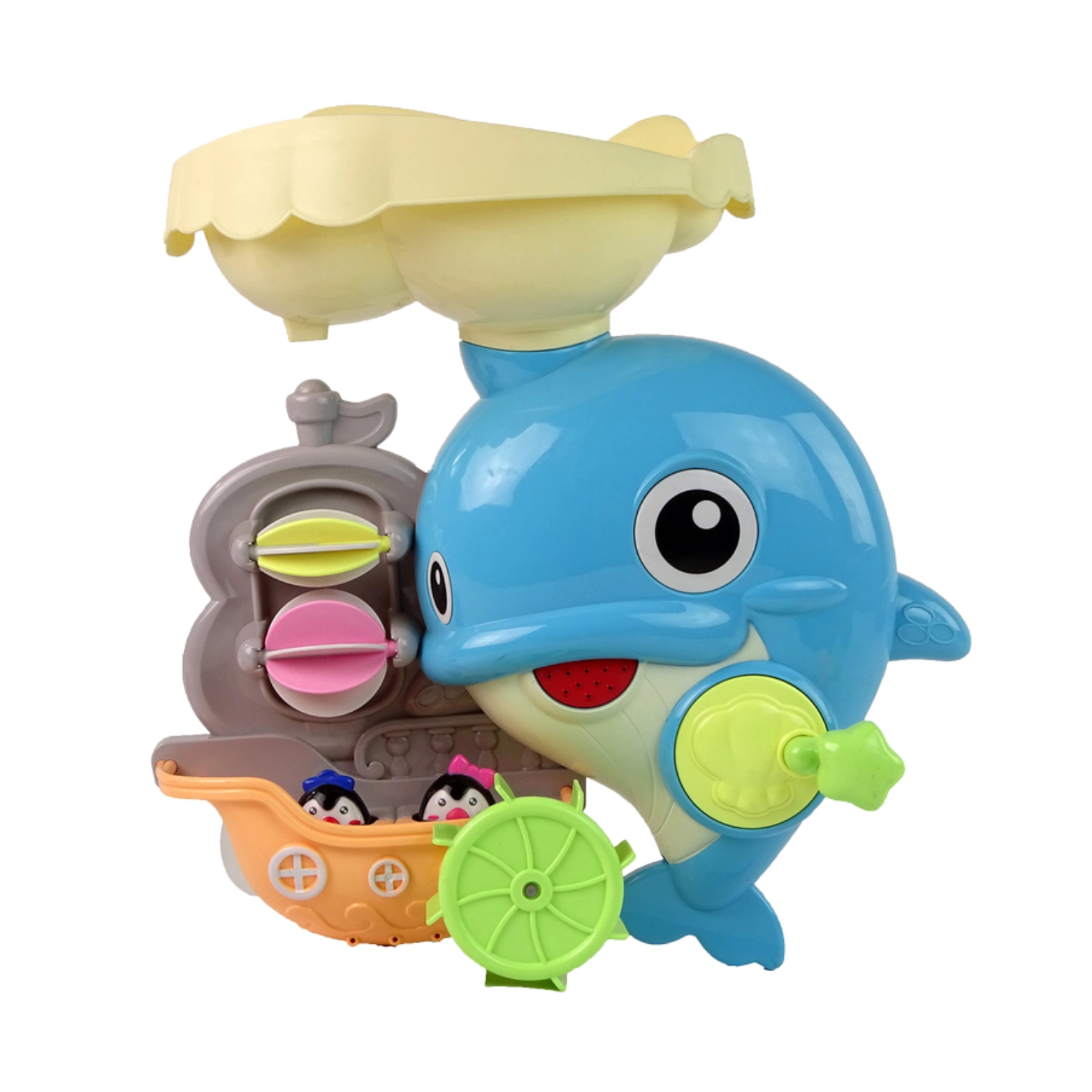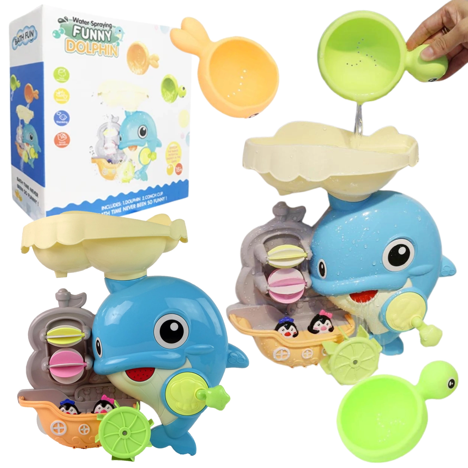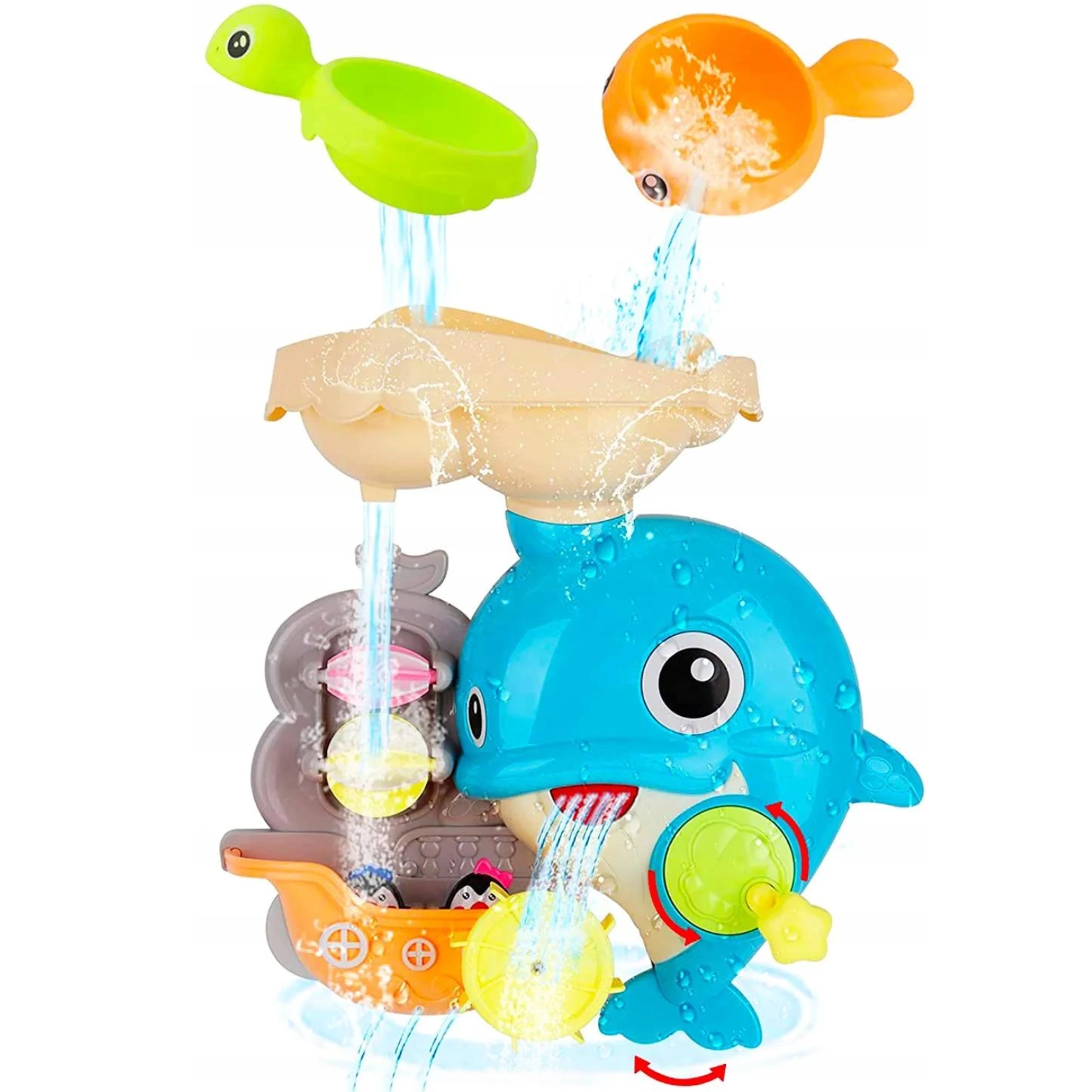 Urocze i odpowiednio dobrane detale, takie jak sympatyczne pingwinki na statku i uśmiechnięta buźka delfinka, sprawią, że kąpiel stanie się pełną radości przygodą. Pod wpływem strumienia wody, delfinek tworzy magiczny wodospad. Zabawa nabierakami w kształcie żółwika i rybki dodatkowo sprawia, że maluch może samodzielnie wpływać na ruch wodospadu i innych elementów zabawki.
