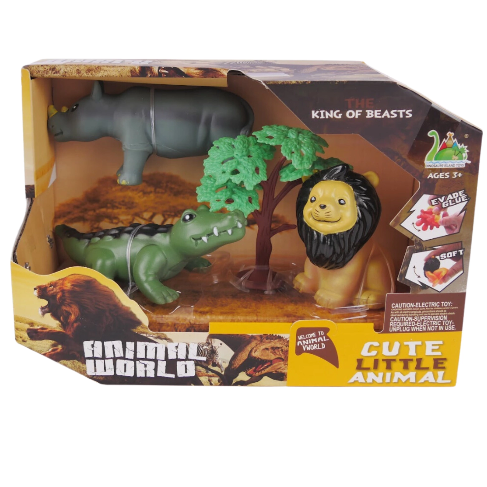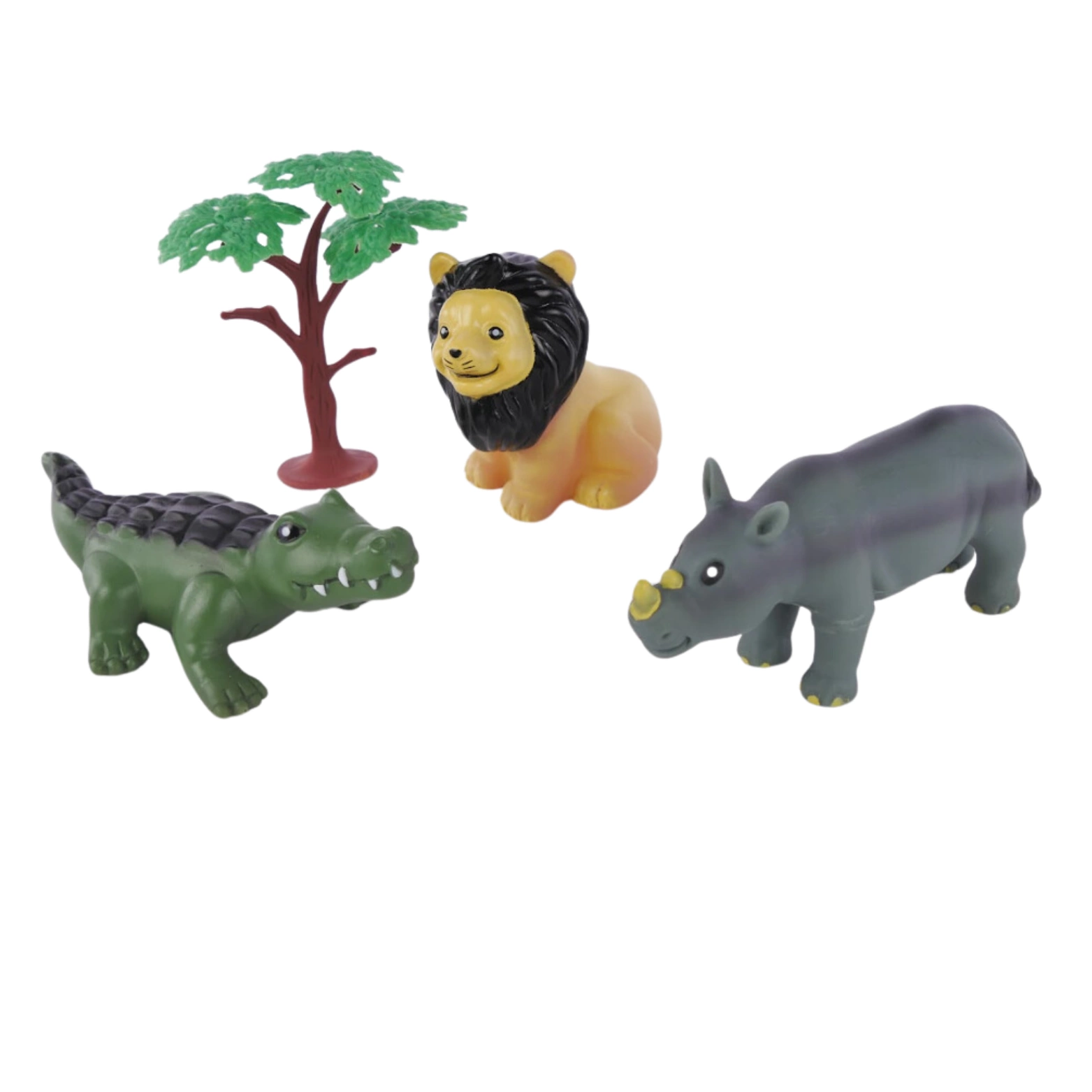 Zestaw zwierzątek, który składa się z lwa, krokodyla, hipopotama i uroczego drzewka, to niezwykła okazja dla dzieci, by wyruszyć w egzotyczną podróż do świata dzikiej przyrody.