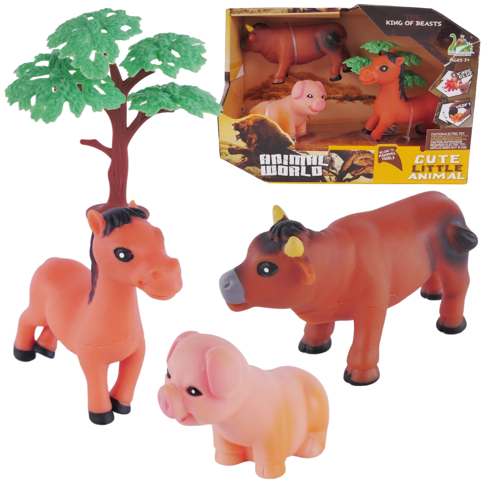 Zestaw ten skupia się na życiu na farmie i zawiera trzy urocze zwierzęta wiejskie: świnkę, krówkę i konika, oraz piękne drzewko.